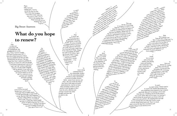 Once completed, the Spring 2022 edition of the Big Straw Magazine sold 200+ copies all across campus. We were able to bring the voices of many passionate artists, authors, and creators to the center stage, as well as those of young Asian Americans such as myself.
